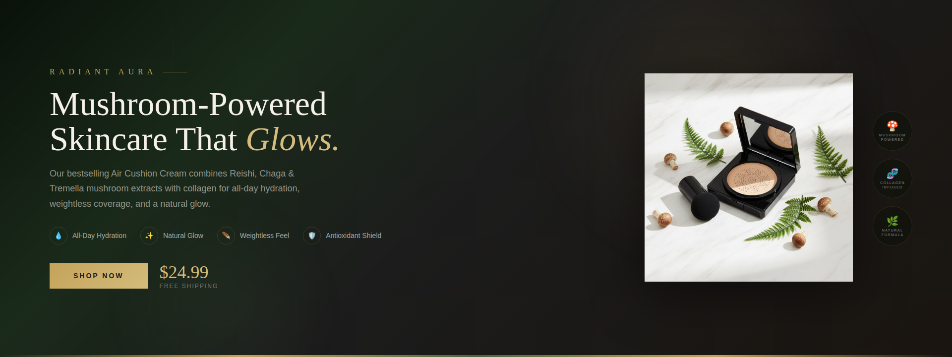 Shop NowLightweight, breathable coverage with all-day hydration. Reishi, Chaga & Tremella mushroom extracts plus collagen for a natural glow.